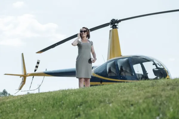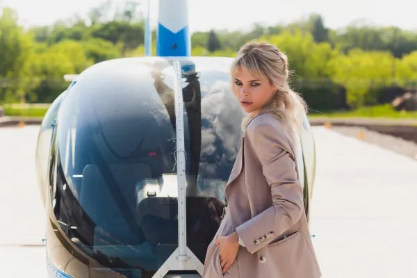 - Эксклюзивная локация – редкая возможность сфотографироваться у вертолёта, что само по себе выглядит стильно и статусно.